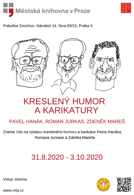25.08.2020 | Sdílet na facebookzpětOd 31.8. jsou v městské knihovně Prahy 5 na Smíchově k vidění karikatury a kreslený humor Pavla Hanáka, Romana Jurkase a Zdeňka Mareše. Více informací v pozvánce. Všichni jste srdečně zváni.