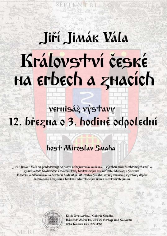 Jednou za čas děláme v Klubu Čtrnáctka v Ratajích nad Sázavou mimořádnou výstavu, která na první pohled s kresleným humorem nesouvisí. Tak je tomu i letos. Všichni, kteří někdy vystavovali v Malostranské Besedě asi znáte mého mnoha a mnohaletého kamaráda Jirku Válu, řečeného Jimák. Vyznačuje se tím, že snad nikdy jsem ho neviděl smutného. Vždycky rozchechtaný pořadatel, v "civilním" životě zaměstnanec pražského Metra. Ale, to už ví méně lidí, také nadšenec české historie a velmi zručný pasíř. Již celá léta vyrábí z nejrůznějších kovových materiálů erby českých šlechtických rodů a historické znaky měst Království českého.