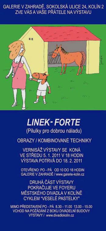 Výstava LINEK - FORTE je přístupná od pondělí do pátku od 10 do 18 hodin a potrvá do 18. 2. 2011. Její druhá část s názvem Veselé pastelky je instalována ve foyeru kolínského divadla a kromě času představení je přístupna na vyžádání.