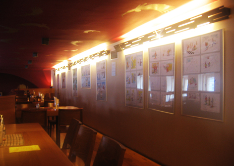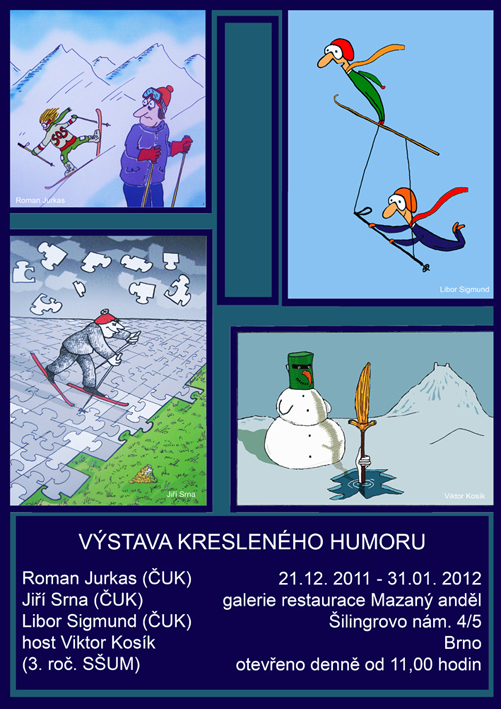 18.09.2012 | Sdílet na facebookzpětV galerii-restauraci "Mazaný anděl" v Brně, visí od 21.12.2011 výstava kresleného humoru. Vystavují Libor Sigmund, Roman Jurkas, Jiří Srna (všichni ČUK), a jako host Viktor Kosík.