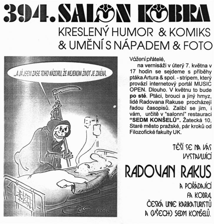 V úterý 7. 5. proběhne v 17:00 vernisáž výstavy Radovana Rakuse. Opět u "Sedmi konšelů". Vše ostatní naleznete v přiložené pozvánce. Těšíme se na Vás!