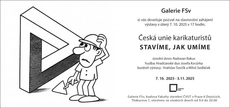 06.10.2025 | Sdílet na facebookzpětZveme Vás již toto úterý, 7.10., v 17.00, na vernisáž výstavy ČUK na Stavební fakultě v Dejvicích, Praha 6. - Více informací naleznete v pozvánce.
