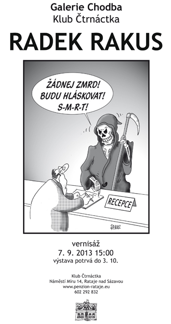 Opět vás zveme do Ratají nad Sázavou. Radek Rakus vás zve v sobotu 7. 9. v 15 hodin na svou vernisáž, do klubu "Čtrnáctka". Více naleznete v přiložené pozvánce.