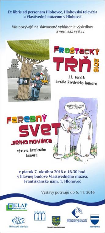 28.09.2016 | Sdílet na facebookzpětJiří Novák bude mít výstavu v Hlohovci, v rámci 11. ročníku bienále kresleného humoru "Fraštacký trn". Vernisáž bude 7. 10., a Jiřího výstava bude mít název "Farebný svet Jiřího Nováka". Ostatní informace naleznete v pozvánce.