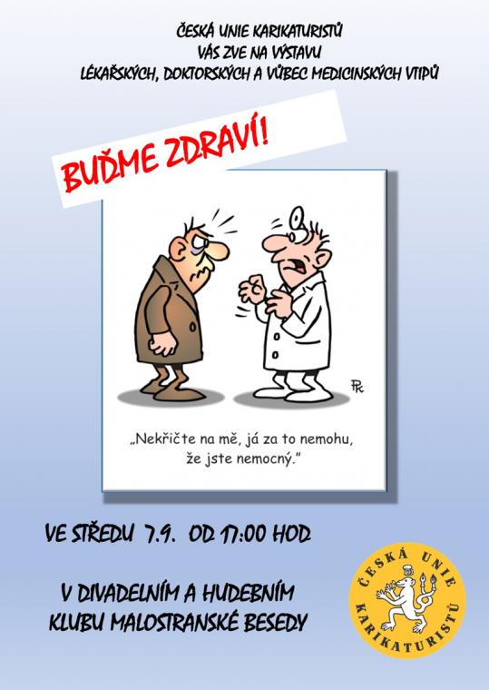 28.08.2022 | Sdílet na facebookzpětVe středu 7.9. v 17:00 jste srdečně zváni do Malostranské besedy. Uskuteční se zde vernisáž společné výstavy "Buďme zdraví". Úvodní slovo přednese pan prof. Pafko. Přijďte se společně zasmát nemocem, setkat se s přáteli a shlédnout kresby předních kreslířů.